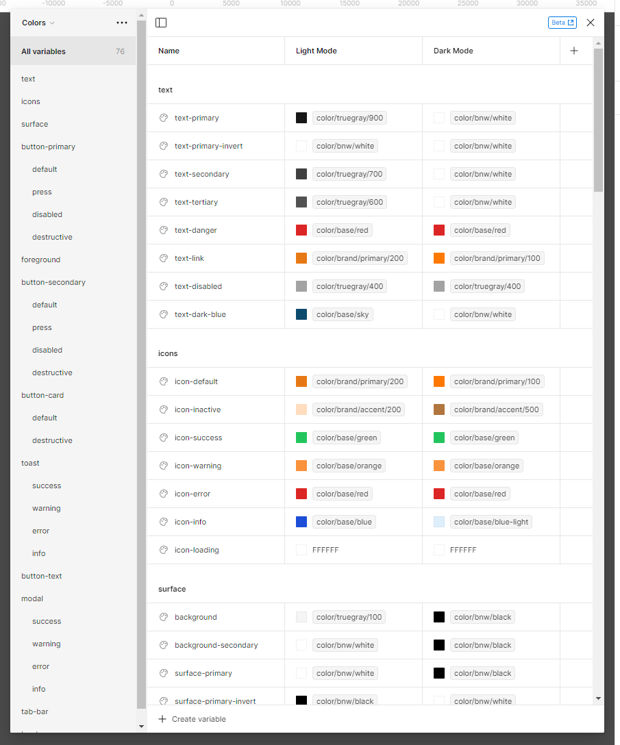 I also implemented variables into our design system which enabled easy mode switching (dark/light) and responsiveness. It minimized component count for easier updates and also simplified onboarding for new designers.